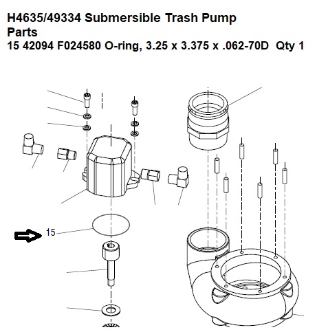 H4635/49334 Submersible Trash Pump Parts 15 42094 F024580 O-Ring, 3.25 X 3.375 X .062-70D Qty 1