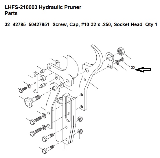 LHFS-210003 Hydraulic Pruner Parts 32 42785 50427851 Screw, Cap, #10-32 x .250, Socket Head Qty 1