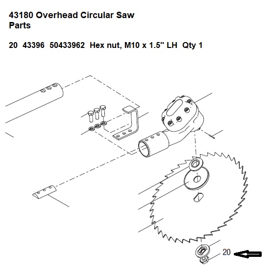 43180 Overhead Circular Saw Parts 20 43396 50433962 Hex Nut, M10 X 1.5" Lh Qty 1