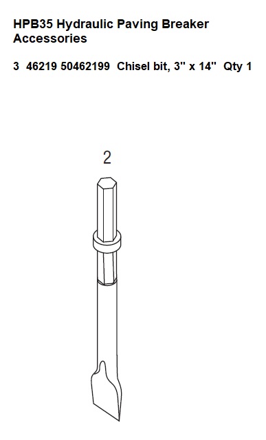 Hpb35 Hydraulic Paving Breaker Accessories 3 46219 50462199 Chisel Bit, 3" X 14" Qty 1