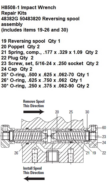 H8508-1 Impact Wrench Repair Kits 48382G 50483820 Reversing Spool Assembly (Includes Items 19-26 And 30)