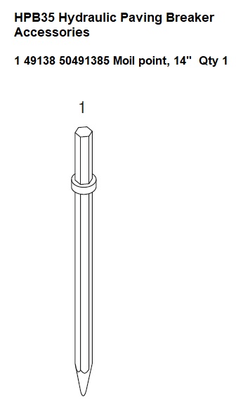 Hpb35 Hpb45 Hydraulic Paving Breaker Accessories 1 49138 50491385 Moil Point, 14" Qty 1