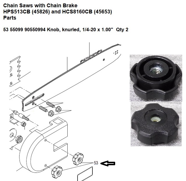 Chain Saws With Chain Brake Hps513Cb (45826) And Hcs8160Cb (45653) Parts 53 55099 90550994 Knob, Knurled, 1/4-20 X 1.00" Qty 2