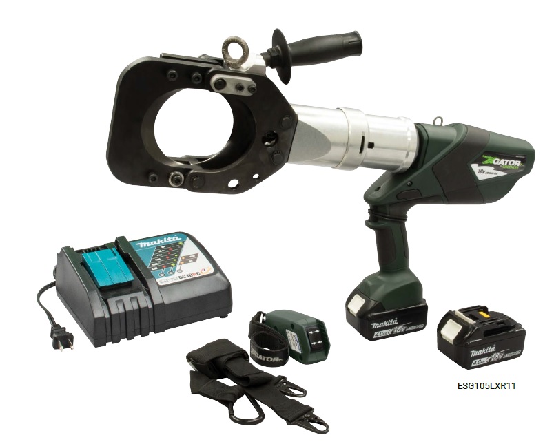 105Mm Gator® Guillotine Remote Cable Cutter, 120V Charger Cat #: Esg105Lxr11 Upc #: 783310047759 ] Remote Control Cable Cutter With End Position Blade Recognition Can Be Used In Either Hand Held Or Remote Configuration Tool Comes Standard With Remote Control (Btc3Gl), Rigging Harness (Btc3-Lh),120V Makita Charger And Two 4.0Ah Batteries, Hard Side Metal Case