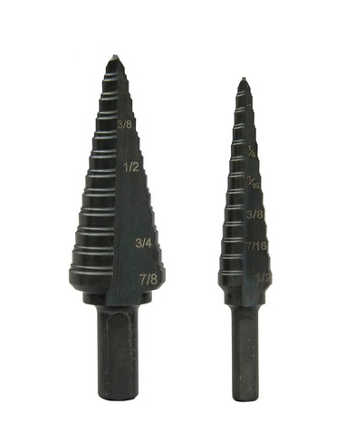 Specifications Type Multi-Hole Step Bit Set Application Cuts Mild Steel, Aluminum, Brass, Copper, Wood, Fiberglass, Plastics And Laminates Minimum Drill Diameter Gsb01: 1/8" (3.2 Mm), Gsb04: 3/16" (4.8 Mm) Maximum Drill Diameter Gsb01: 1/2" (12.7 Mm), Gsb04: 7/8" (22.2 Mm) Maximum Sheet Metal Thickness 10 Gauge (3.5 Mm) Included Gsb01 (1/2" Bit) And Gsb04 (7/8" Bit)