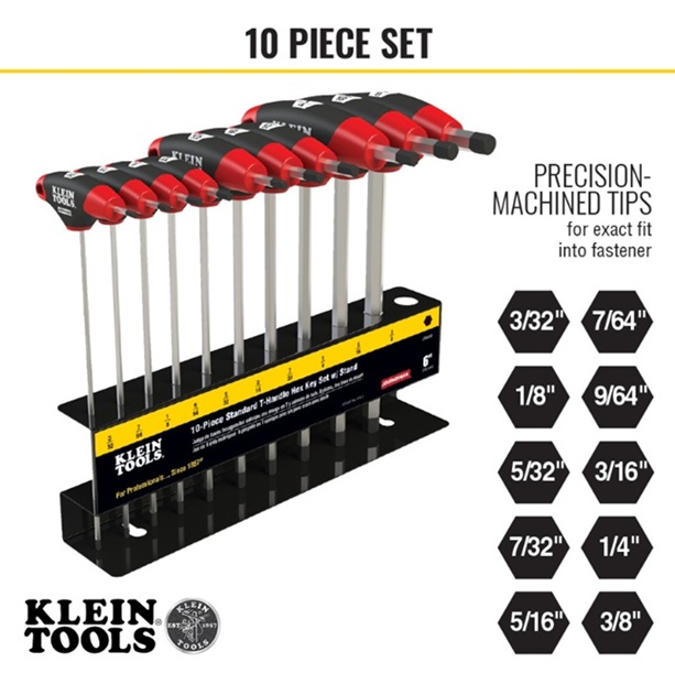 Klein Jth610E Hex Key Set, Sae T-Handle, 6-Inch, With Stand, 10-Piece 092644337604