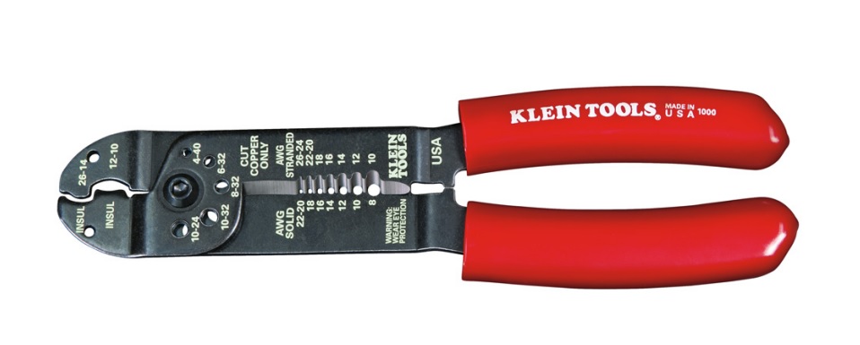 Specifications Application: Cuts And Strips Wires Special Features: Forged Steel, 4 Times Stronger Than Traditional Klein Wire Strippers Strips And Cuts: 8-22 Awg Solid; 10-26 Awg Stranded Screw Shearing: 4-40, 6-32, 8-32, 10-24, 10-32 Crimping Capacity: 10-22 Awg Overall Length: 7.75'' (19.7 Cm) Handle Color: Red Weight: 7 Oz (200 G)