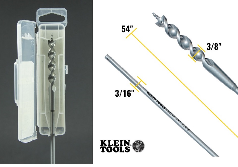 The Klein Flex Bit Auger Is Used To Drill Holes Through Wood Within A Wall. The Screw Point Tip Pulls The Bit Through Wood. A Hole In The Tip Allows For Use With Wire Or Cable Pulling Grips.