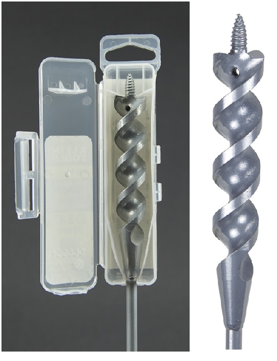 Used To Drill Holes Through Wood Within A Wall Tapered Back For Easy Bit Retrieval Spring Steel Shaft Resists Deformation Screw Point Tip Pulls The Bit Through Wood Fish Eye Hole On Either End Aids In Pulling Wire Inside Wall Cavity From Either Direction After Drilling Comes With A Reusable Protective Case For The Auger Head When The Bit Is Not In Use