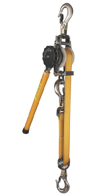 Large, Non-Conductive Dial (Drum Knob) Allows Web Slack To Be Adjusted With Ease 360-Degree Handle Rotation 3/4-Ton Single Line And 1-1/2-Ton Double Line Load Rating Tight Ratcheting Mechanism Allows Precise Tensioning Meets Ansi/Asme B30.21-2014 And B30.10-2014 Standards Has A Single Line Pulling Distance Of 20-Inches To 138-Inches (50.5 To 350.5 Cm) Hoist Can Be Used With Either A Single Line Or A Double Line