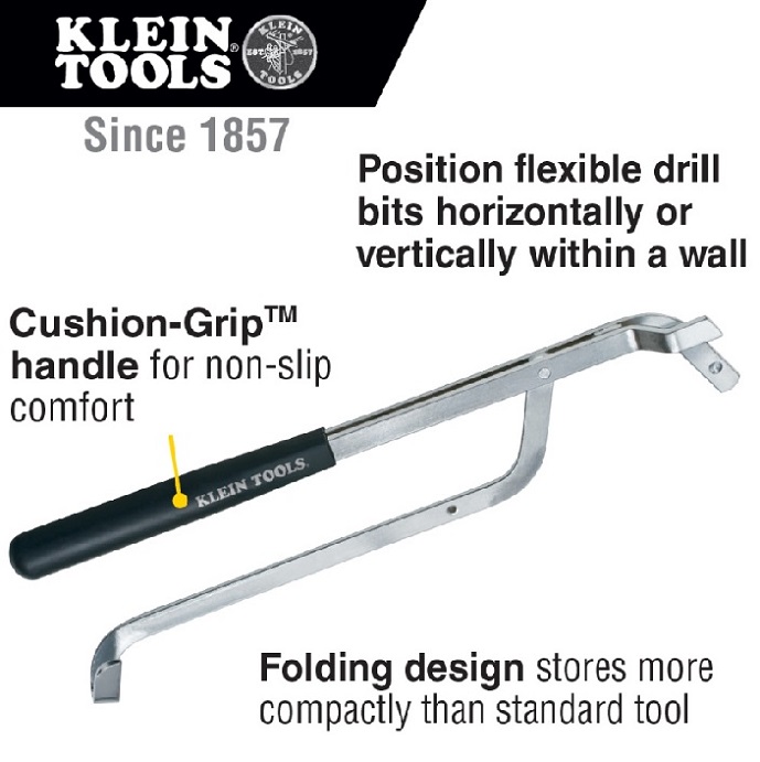 The Klein Flex Bit Placement Tool Provides Accuracy And Consistency To Get The Job Done Right. Use It To Position Flexible Drill Bits Horizontally Or Vertically Within A Wall. The Folding Design Allows For Compact Storage So You Can Have It In Your Bag Without It Taking Over Your Bag.
