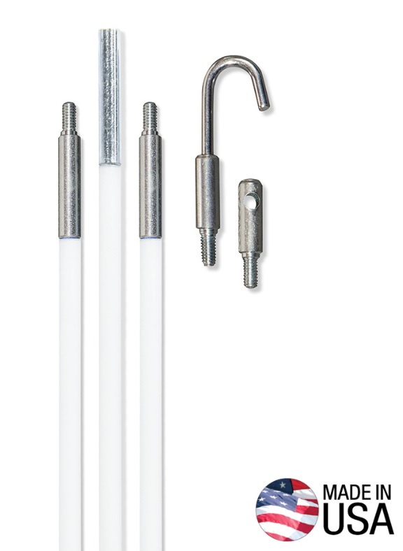 Provides The Ultimate In Flexibility To Navigate Tight Bends And Narrow Openings Protective Splinter Guard™ Coating Keeps Hands Free Of Fiberglass Splinters Durable Stainless Steel Connectors Glows In The Dark To Illuminate Dark Work Spaces Made In Usa Three 5/32-Inch (4 Mm) Diameter X 6-Foot (1.83 M) Glow Rods Assemble To A Full 18-Feet (5.49 M) Bullet Nose And Hook Attachments To Attach And Grab Wires