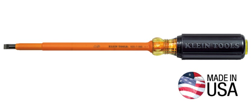 Klein 605-7-Ins Insulated Screwdriver, 1/4-Inch Cabinet, 7-Inch Round Shank 85330-2 New