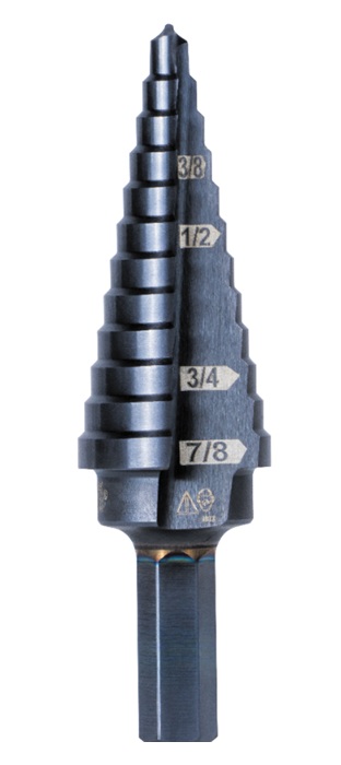 Step Bits Are Coated With Aluminum Titanium Nitride And Are 10 Times More Durable Than Steamed Black Oxide Coating For Longer Bit Life Double, Straight Flute Removes Chips For Clean Cuts And Drilling Durable, 3/8-Inch Hex Shank Provides A Firm, Positive Grip And Won'T Spin Out In The Drill Laser Markings Are Easy To Read For Quick Size Identification Fast-Starting, Non-Walking Drill Tip For Use On Steel (Up To 16 Gauge), Wood, Plastic, And Aluminum 3/16-Inch To 7/8-Inch (4.8 To 22.2 Mm), 12-Step Sizes
