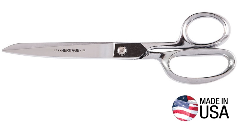 Longer Cut Length Steel Blades Cut More In One Motion. Precision Ground Blades Produce A Sharp, Clean, Uniform Cut. Chrome Over Nickel-Plated Blades Resist Corrosion And Rust. Cuts Heavy Textiles, Construction Paper, Cardboard, And Plastics. Hot Forged Steel Trimmer. Made In Usa. Length Of Cut Is 4-1/2 Inches (114.3 Mm). Overall Length Is 9-1/4 Inches (235.0 Mm). Weight Is 0.43 Pounds (0.20 Kg).