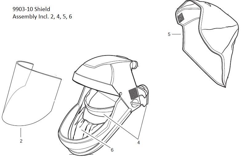 Includes: 9903-09L Lens 9903-03 Ratchet Suspension Assembly 9903-04 Head Cover 9903-05 Chin Guard