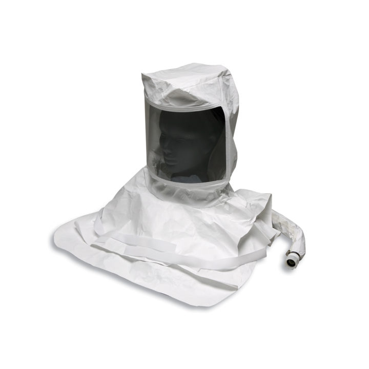 Our Tyvek® hood has a patented breathing tube integrated directly into the hood. The tube is splash-resistant and entirely disposable. Although made flexible for on-the-job performance, the multi-layer foam tubing material prevents downtubes from being crushed or twisted, with the tube’s foam layers providing a sound-dampening system both unique and made in accordance with stringent NIOSH requirements.