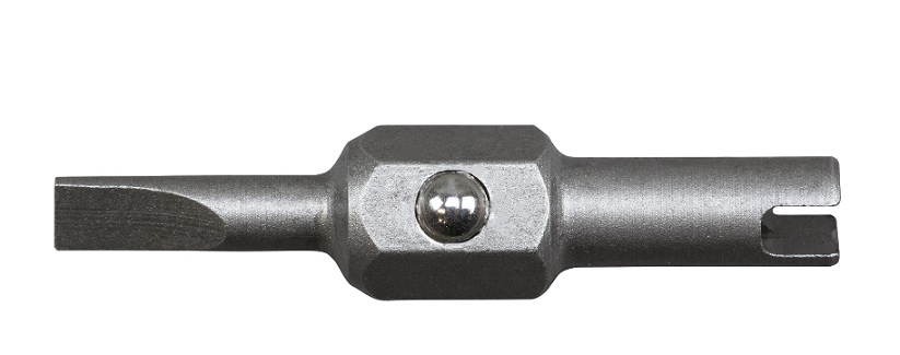 Double-Sided Replacement Bit With Schrader And 1/8-Inch Slotted Tips Used For Installing/Removing Common Tr-4 Schrader® Valves For Use With Klein'S 8-In-1 Slide Driver™ Screwdriver/Nut Driver (Cat. No. 32596) For Use With Klein'S 11-In-1 Multi-Bit Screwdriver (Cat. No. 32527) Precision Ground Tips For Greater Strength Custom Heat-Treated For Long Life Made Of High Quality Tempered Steel
