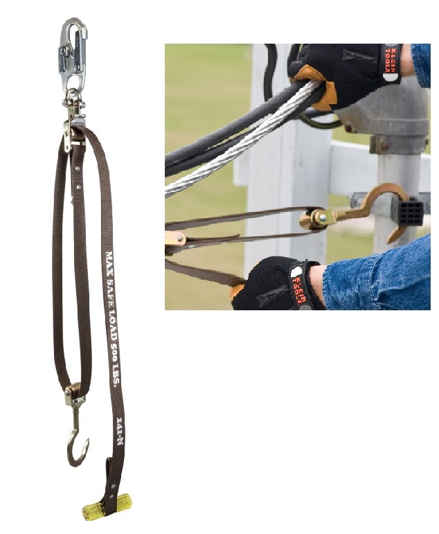 Quickly Sag Service Connections Added Handle For Easier Grip During Pulling And Double-Locking Snap Hook For Convenient Switching Between Grips Forged Steel Swivel Hook Has A Large Opening And Long Shank To Reach Under An Insulator Maximum Safe Load 500-Pound (227 Kg) Made In Usa Strap Is Made Of Tough Nylon Webbing All Metal Parts Are Galvanized