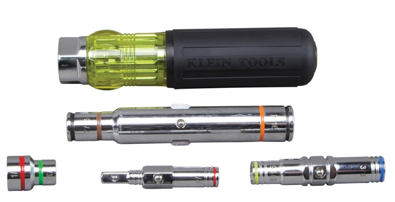 This Klein Screwdriver / Nut Driver Allows For One-Handed Driving, With Seven Sizes In One Tool Strong, Rare-Earth Magnets (1/4-Inch, 5/16-Inch, 11/32-Inch, 3/8-Inch, 1/2-Inch) Securely Hold Nuts And Bolts Spring Coil (7/16-Inch, 9/16-Inch) Holds Nuts And Bolts In Place Without The Use Of Magnets Hollow Shafts (1/4-Inch, 5/16-Inch, 3/8-Inch, 7/16-Inch, 9/16-Inch) For Driving Nuts Deep Onto Bolts Or Threaded Rod Heavy-Duty Handle And Shaft Exceed The Torque Performance Of Regular Nut Drivers Wrench-Assist On Handle For Added Torque On Tough Jobs Color-Coded Bands For Easy Identification