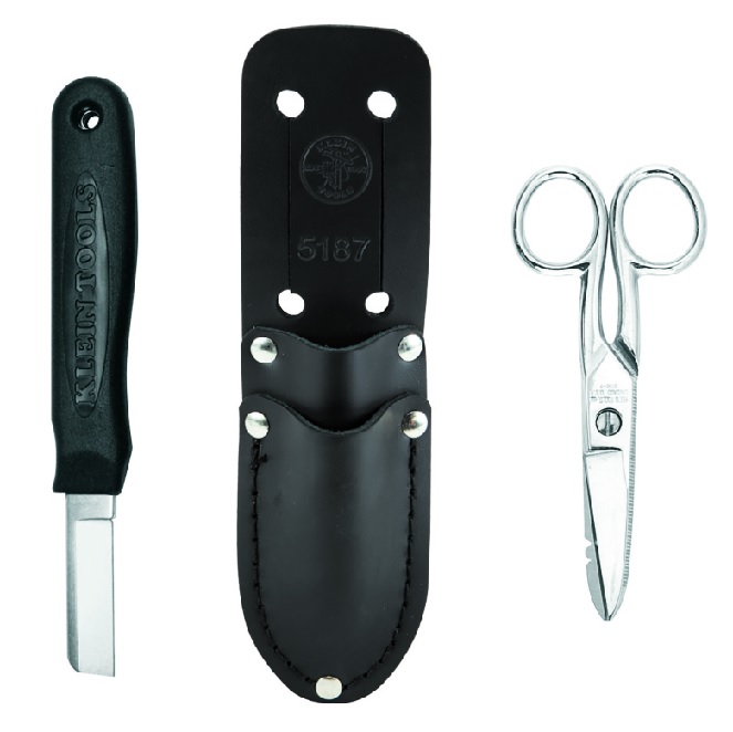 Included: 44200 Cable Splicer'S Knife; 2100-7 Electrician'S Scissors With Stripping Notches; 5187 Slotted Leather Holder