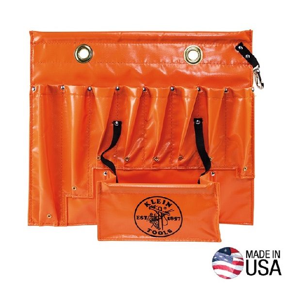 8 Hand-Tool Pockets, One Pouch And A Swivel Snap Hook Smaller Footprint Takes Up Less Space On The Truck Bright Orange For Easy Visibility Water-Resistant Vinyl Protects Against The Elements Made In The Usa Pouch Reinforced With Heavy-Duty Rivets Swivel Snap Hook To Attach Tools S-Hooks Sold Separately (Cat. Nos. Bc311, Bc312)