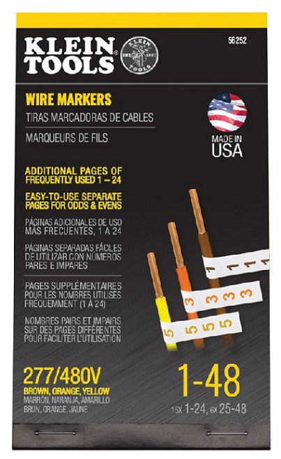 Klein 56252 Wire Marker Book 277/480V 3 Phase 1-48 092644562525 New