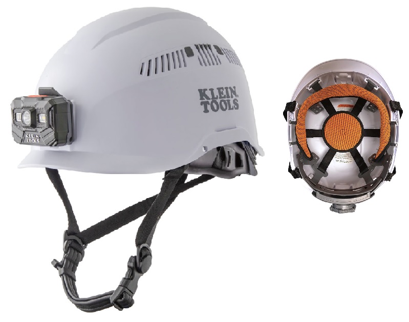 Compact, Lightweight Safety Helmet Design For At-Height And Confined Space Applications; Low Profile Bill For Unobstructed Visibility Safety Hard Hat Has Patent-Pending Accessory Mounts On Front And Back Ensure Klein Headlamps Attach Securely And Precisely, Every Time — No Straps Or Zip Ties Needed! Breathable, Padded Sweat-Wicking Sweatband And Top Pad Improve Comfort And Are Machine Washable Adjustable Vents Can Be Opened Or Closed To Control Air Circulation In Cold And Hot Weather This Class C, Type 1 Safety Helmet Meets Ansi Z89.1-2014, Csa Z94.1-15; En397:2012+A1:2012-5.2.1, 5.2.4, 5.2.5 En12492:2012-4.2.1.2, 4.2.1.3, 4.2.1.4, 4.2.2, 4.2.3, 4.2.4 (Front/Back/Side Impact) Easy, One-Handed Suspension Adjustment With Large Knob Ratchet Mechanism, Even With Gloves On; Pivots To Clear Bandana Knots And Pony Tails Detachable 4-Point Padded Chin Strap For Comfortable Secure Fit Universal Accessory Slots On Both Sides For Attaching Hearing Protection, Face Shield And More Includes Rechargeable Headlamp/Work Light (Cat. No. 56062) With Charging Cable Accessories And Replacement Parts (Sold Separately): Rechargeable Headlamps (Cat. Nos. 56049, 56048, 56062), Sweatband, Top Pad, Chin Strap, Suspension System (Cat. Nos. Khhswtbnd, Khhtoppad, Clmbrstrp, Clmbrspn)