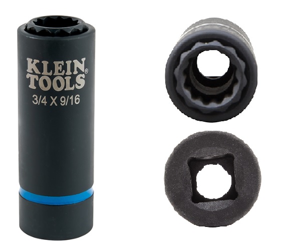Klein 66001 2-In-1 Impact Socket, 12-Point, 3/4 And 9/16-Inch 092644650468 New