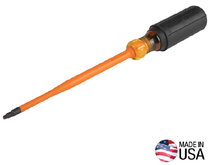 6-Inch Round Shank, No. 2 Square, Insulated Screwdriver With A Slim Tip That Allows For Greater Access Into Tight Spaces 1000-Volt Rated Layer Of Orange Impact And Flame-Resistant Insulation Protects From Energized Sources Insulated Blade Is Flush With The Tip To Help Reduce Nicking The Insulation Cushion-Grip™ Handles For Greater Torque And Comfort Made In Usa Tip-Ident® Quickly Identifies The Tip Type And Orientation Meets Or Exceeds Astm F-1505-16 And Iec 60900:2018
