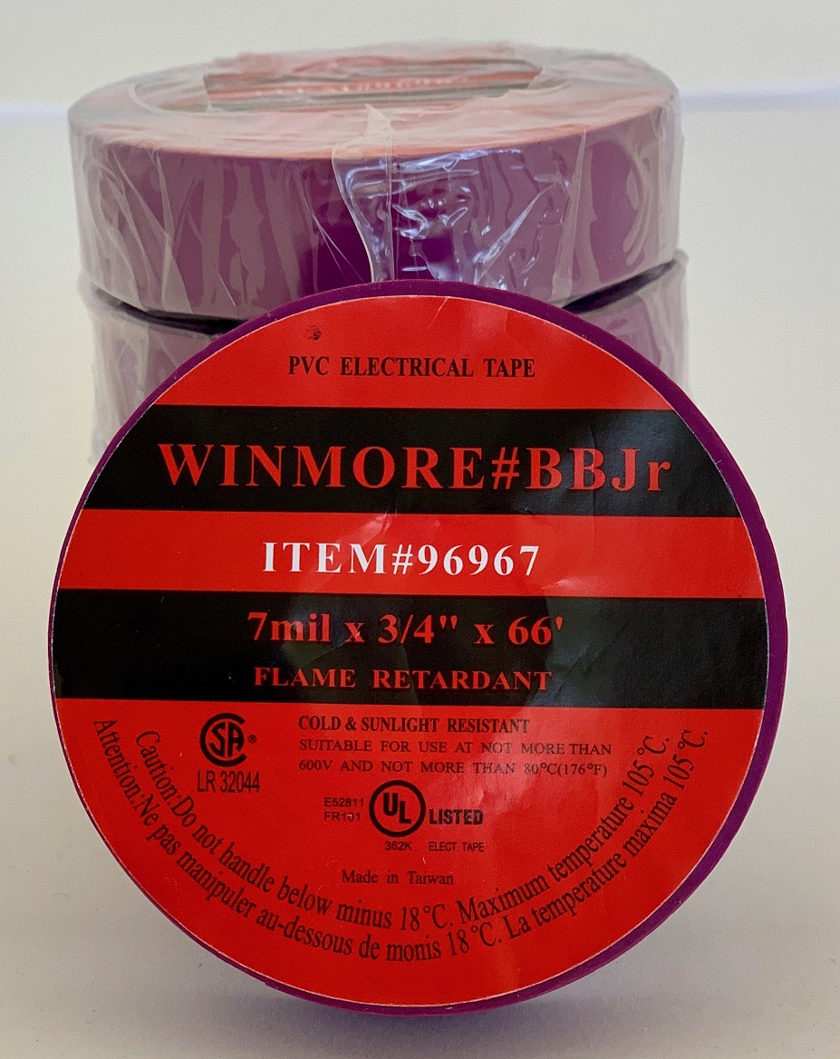 Premium All Weather Electrical Tape - Violet Used For The Joining And Splicing Of Wires & Cables For Electrical Insulation. Winmore Electrical Tapes Are Perfect For All Your Needs. The Tape Is A Soft Pvc Film With A Rubber-Based Adhesive System. Our Product Is Ul Rated (766Ll Is Also Csa Rated), And Is Suitbale For Uses Under 600V. This Non-Corrosive, Pressure-Sensitive Adhesive Eliminates The Need Of Heat, Moisture, Or Other Catalysts To Affect The Application. Product Is Retail Ready And Is Sold In Sleeves Of 10 Rolls. #760 & #766 Are Low Lead.