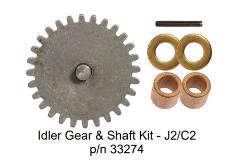 P/N 33274 J2-C2 Idler Gear & Shaft Kit Includes 2 P/N 03056 Bearing Oilite 1 P/N 03309 Pin Roll 094 0500 1 P/N 07565 Shaft & Gear 2 P/N 16692 Washer .265 Flt Replacement Parts For The J2/C2/C Lashers.