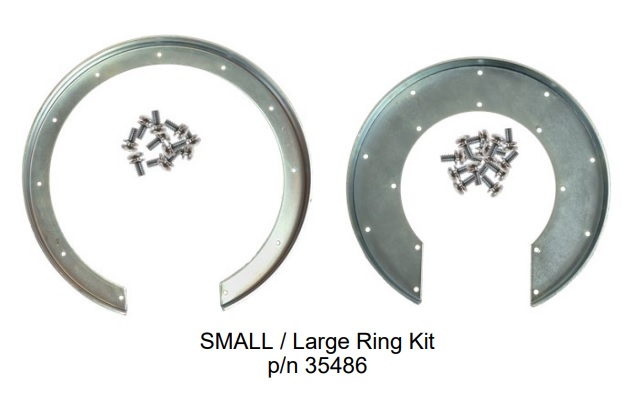 P/N 35486 Small / Large Ring Kit Used In: Rotating Drum Kit Includes: 1 P/N 03077 Ring Large 1 P/N 03076 Ring Small 27 P/N 31309 Smch 6-32X .37 Replacement Parts For The J2 Lashers.