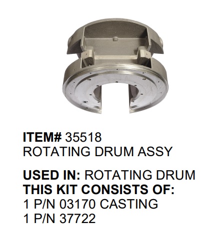 P/N 35518 Rotating Drum Assembly Kit For The J2 Used In: Rotating Drum Kit Includes: 1 P/N 03170 Casting 1 P/N 37722