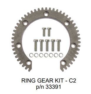 P/N 33391 C2 Ring Gear Kit Used In: C2 Drive Housing Replacement Parts For The C2 Lashers. Kit Includes: 2 P/N 03303 Smch 250-20X .50 5 P/N 03305 Smch 250-20X .75 7 P/N 16005 Wa .250 Lok 1 P/N 27674 Ring Gear