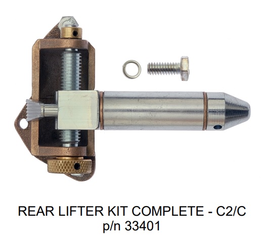 P/N 33401 C2, C Rear Lifter Kit Complete Used In: C/C2 Rear Lifter Kit Includes: 1 P/N 03408 Lifter Rear 1 P/N 16005 Wa .250 Lok 1 P/N 28090 Scap 250-20X .875 Replacement Parts For The C, C2 Lashers.