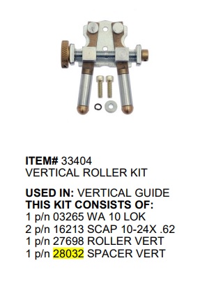 P/N 28032 (33404) Spacer Vert Must Buy Kit # 33404. Parts Not Sold Individually. Replacement Part For The C2 Lasher. Item Is Part Of The # 33404 Kit.