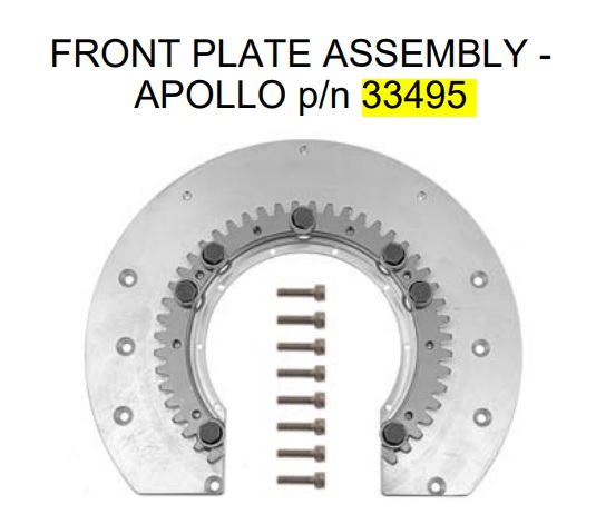 P/N 33495 Front Plate Assembly Used In: Apollo Front Kit Includes: 8 P/N 27095 Scap 6-32X .50 Sk Ss 1 P/N 27328 Plate Front Assy Replacement Parts Of The Apollo Lashers.