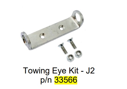P/N 33566 Towing Eye Kit Used In: J2 Drive Housing Kit Includes: 1 Towing Eye 2 .25-20 Hx Nuts 2 Smch 250-20X1.00 Fl St P Zn Replacement Parts For The J2 Lashers.